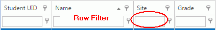 Click in the Grade Row Filter Field and enter 11. (Note: The row filter is defaulted as a begins with field. This means you may enter the numbers or letters the value begins with and the system will locate those records. Therefore, if you are filtering for ninth grade Students, you cannot enter just a 9, you must enter 09.)